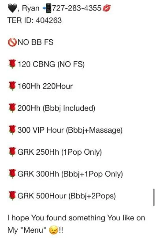 Hello, welcome to Ryan's world. Thank You for taking the time to check Me out. I’m an Independent Provider. I'm easy going and open-minded. I love creating a relaxed vibe where You can unwind and let go of any stress. Whether you're looking to be pampered or need someone to make You feel Special, I'm here for You. I stand 5’3 with a bright smile and calm demeanor to put You at ease. Time with Me is never rushed, so sit back, relax and enjoy. I will always be freshly showered and dressed up for You. I take outfit requests, if it’s something I don’t have You are more than welcome to gift Me the funds to purchase what You want to see Me in or You can buy it Yourself and bring it to Our meeting. When contacting Me, please politely and briefly introduce Yourself..first name, age and time Your interested in meeting. I lightly screen all new clients for safety and compatibility. Chemistry is important to Me and I reserve My efforts for Gentlemen I believe I would be most compatible with. Please be patient when contacting Me, if You treat Me good, I will treat You better, GUARANTEED! I love to put a big smile on Your face! Please don’t be shy, I can’t wait to hear from You! 🖤, Ryan TER ID: 404263